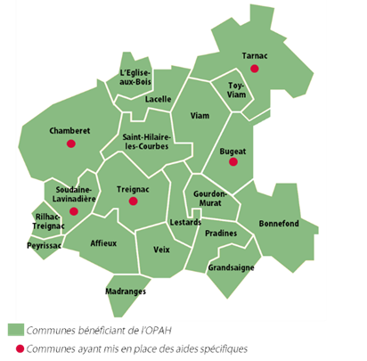 Au-delà des aides pour les travaux de rénovation énergétique, d’adaptation du logement ou de rénovation globale, disponibles sur l’ensemble du territoire communautaire, les Communes de Bugeat, Treignac, Chamberet, Tarnac et Soudaine-Lavinadière mettent en place des aides spécifiques.