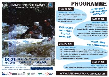 Le championnat de France de Canoe-Kayak descente classique 2018 se déroule à Treignac du 18 au 21 MAI.