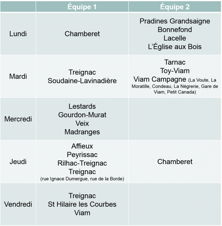 Jours de collecte des Ordures Ménagères :
