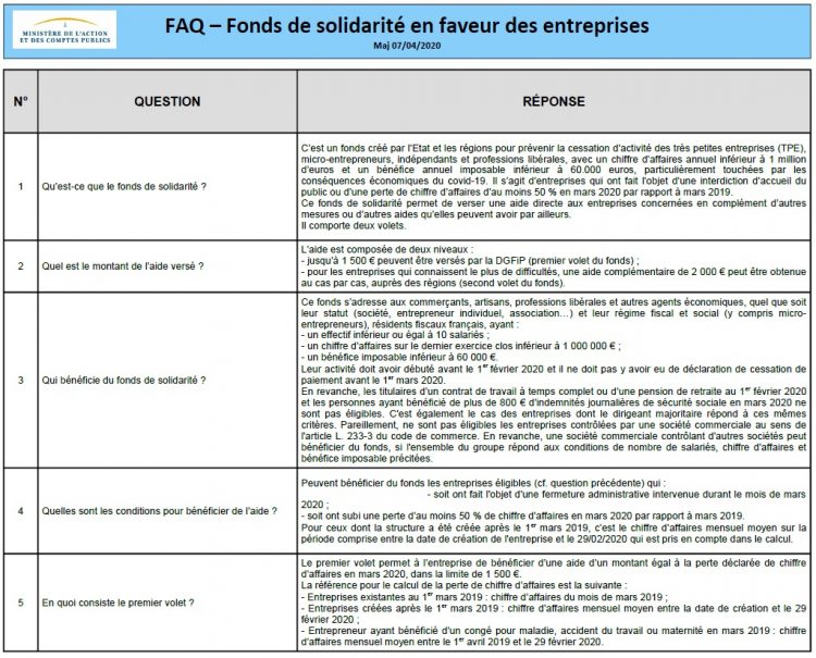 Toutes vos questions sur le Fonds de solidarité en faveur des entreprises :