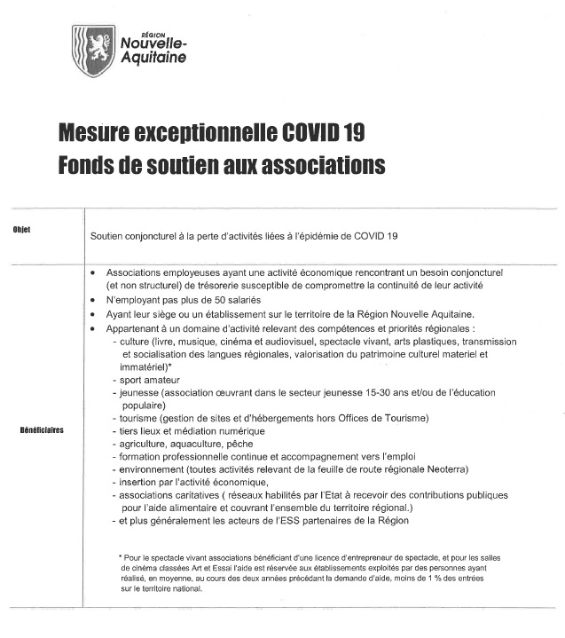 Dans cette crise sanitaire qui nous touche tous, la Région Nouvelle Aquitaine à mis en place une aide le :