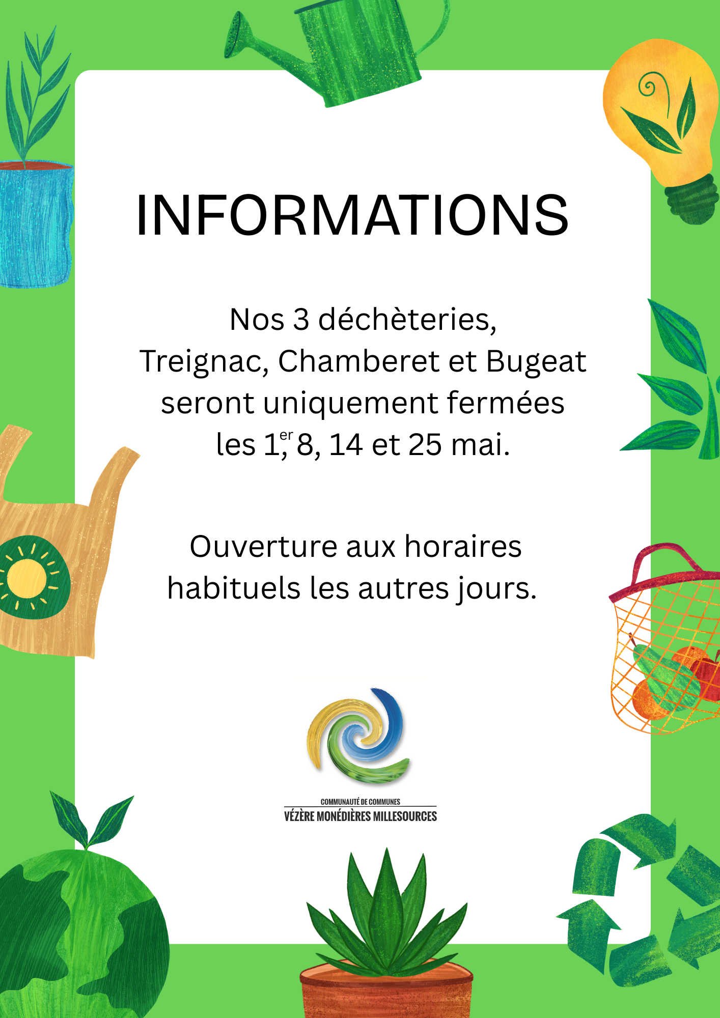 Merci de prendre connaissance des fermetures du mois de mai :
