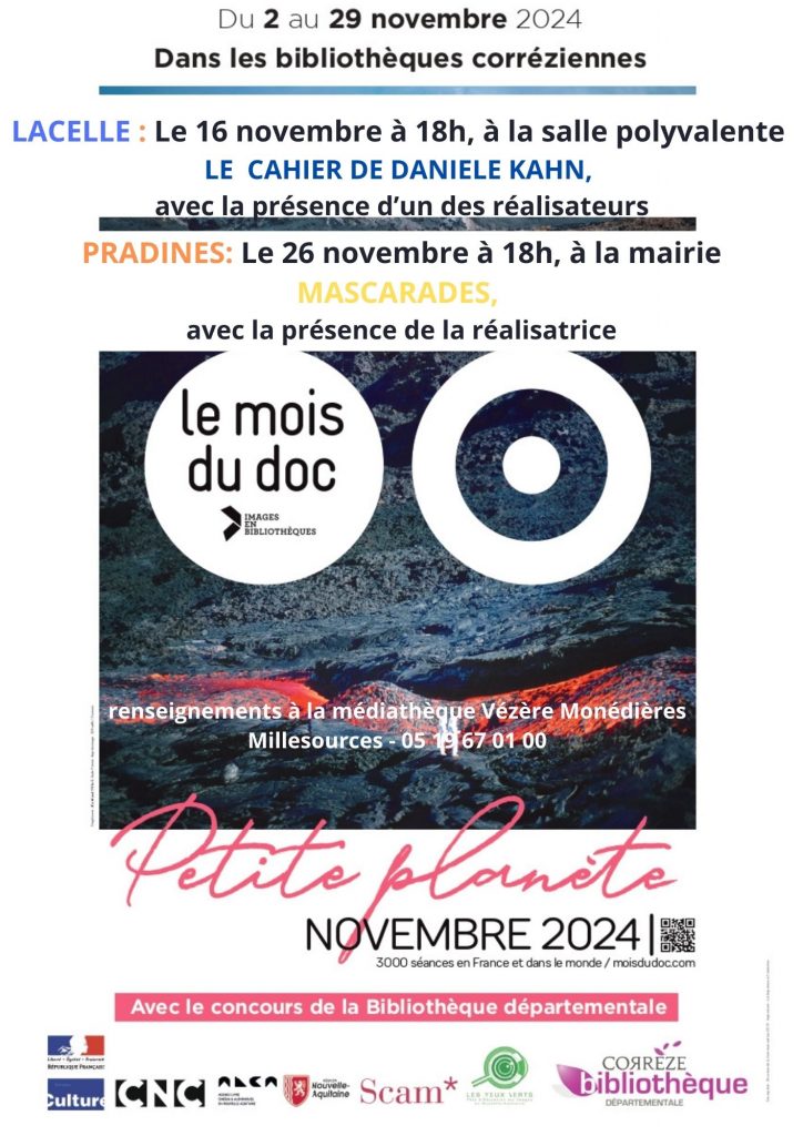5 novembre 2024 Catégorie(s) : Divers Deux projections sur notre territoire, à Lacelle et à Pradines.