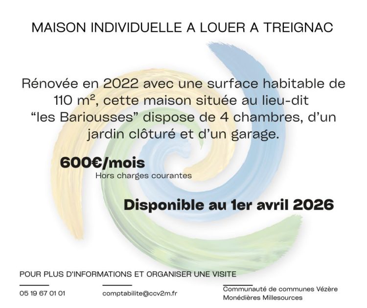 Location d’une maison sur la commune de Treignac