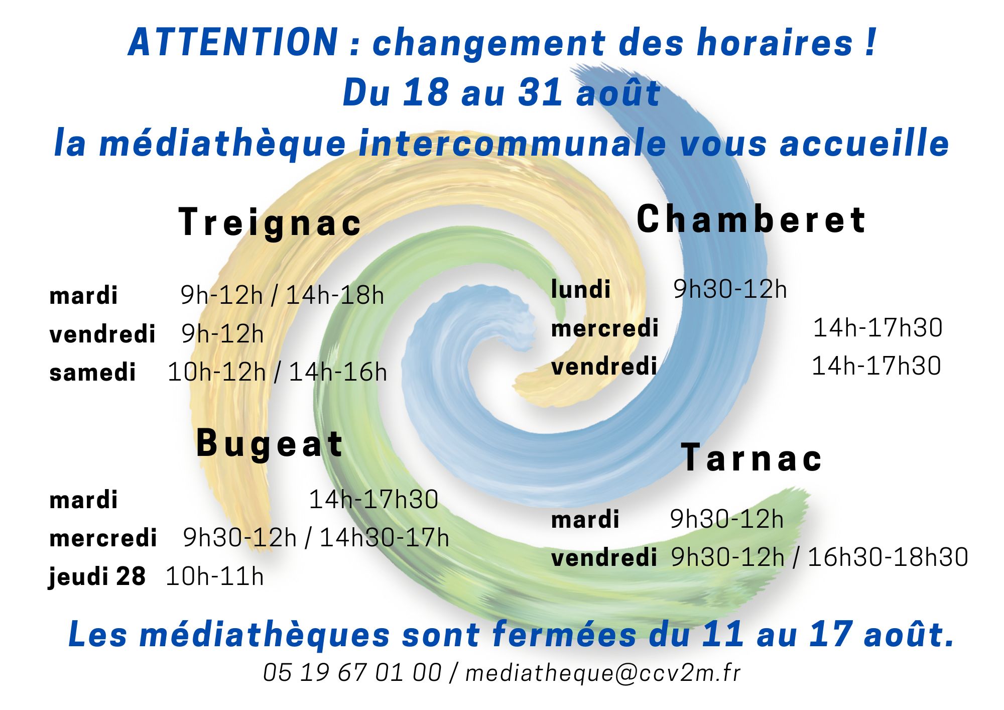 Médiathèque – Fermeture du 11 au 17 août + changement des horaires du 18 au 31 août
