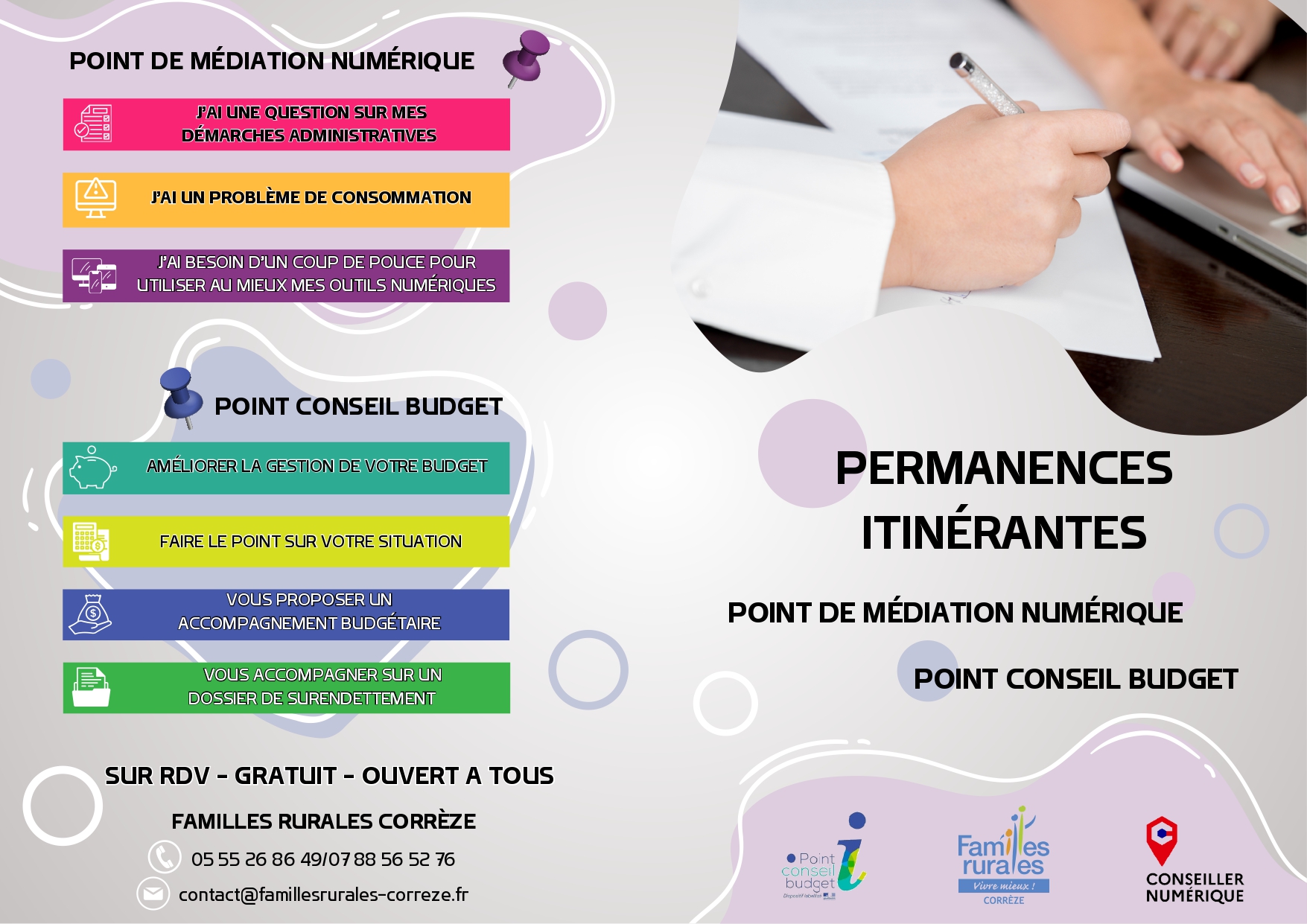 25 février 2025 Catégorie(s) : Divers Retrouvez les permanences itinérantes gratuites, sur rendez-vous, ouvertes à tous.