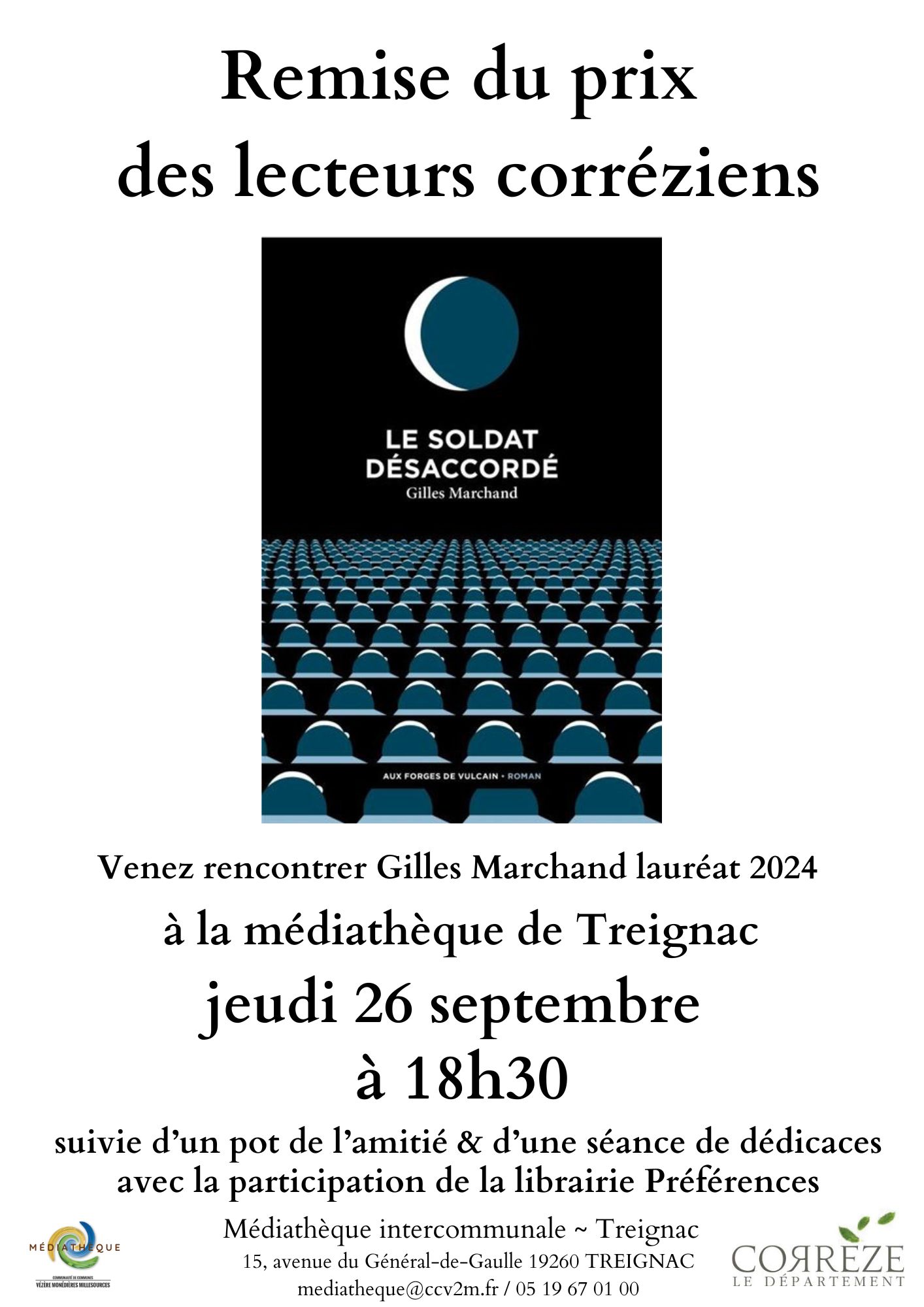 La médiathèque accueille Gilles Marchand, lauréat 2024, du prix des lecteurs corréziens, organisé par la bibliothèque départementale de la Corrèze.