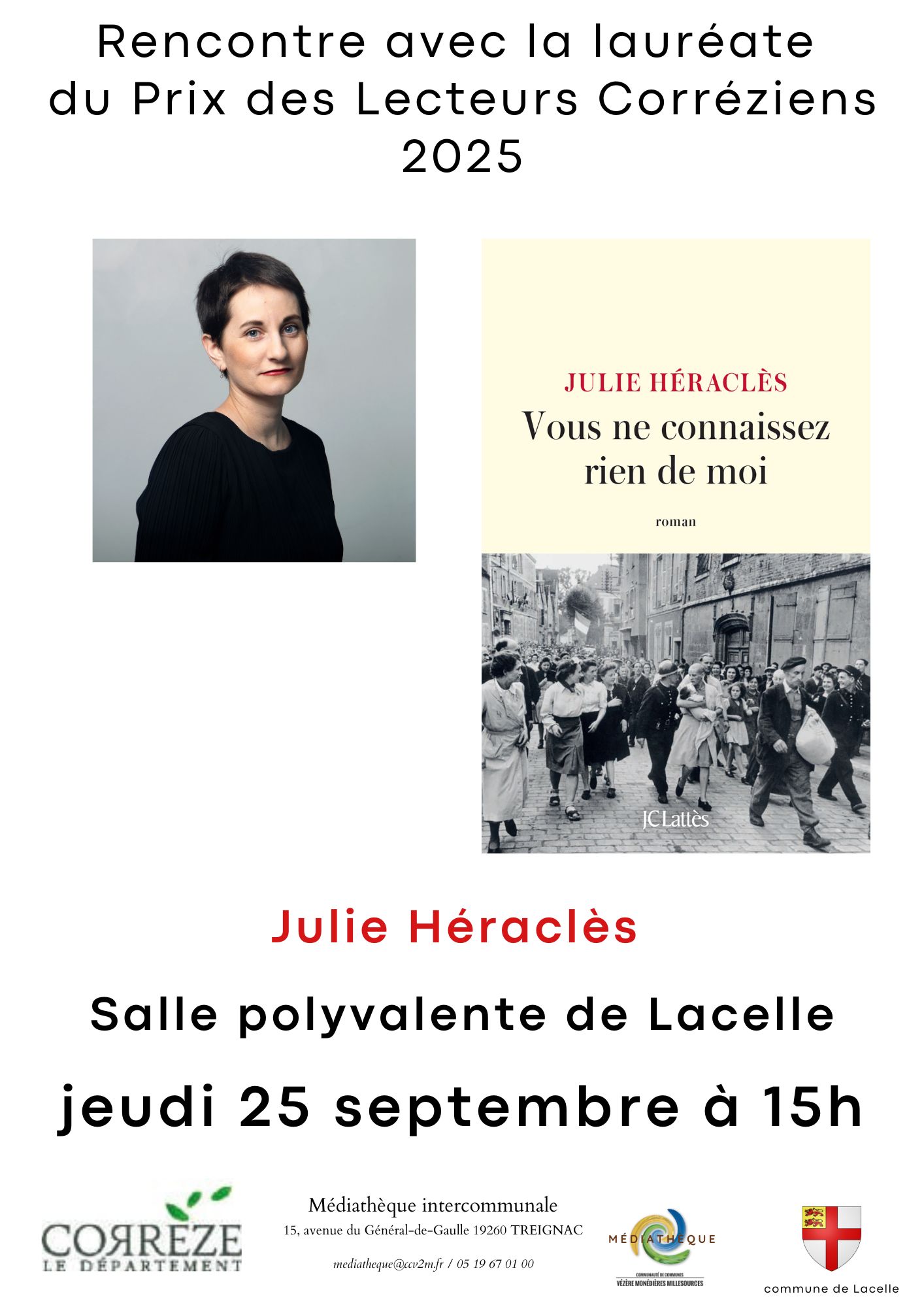 Rencontre Julie Héraclès, lauréate du Prix des Lecteurs Corréziens – Jeudi 25 septembre – 15h – Lacelle