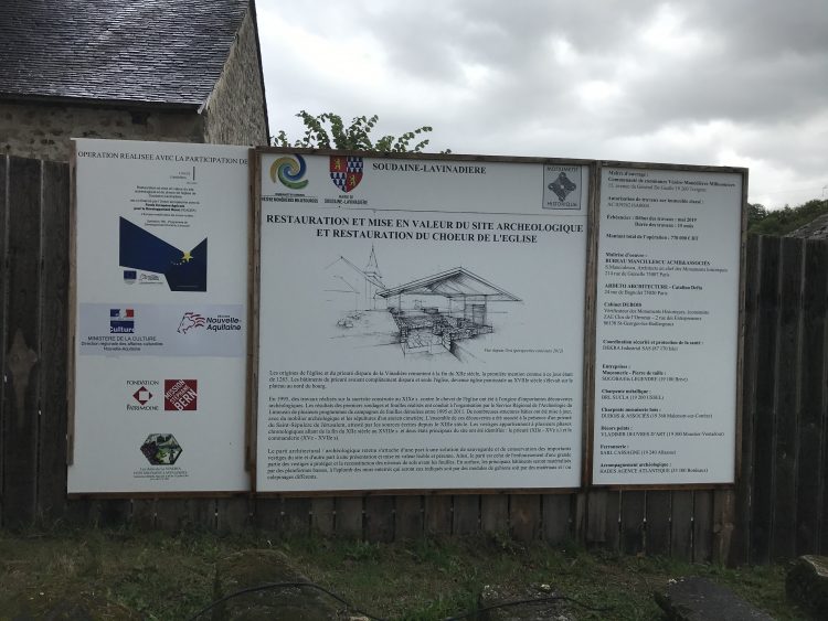 La Restauration et la mise en valeur du site archéologique et du chœur de l’Église de Soudaine-Lavinadière ont été possibles grâce à l’appui financier de l’Europe dans le cadre du FEADER, mais aussi de la DRAC, de la Fondation du Patrimoine, de la Mission Bern , de la Région, du Conseil Départemental de la Corrèze et de la Réserve parlementaire.