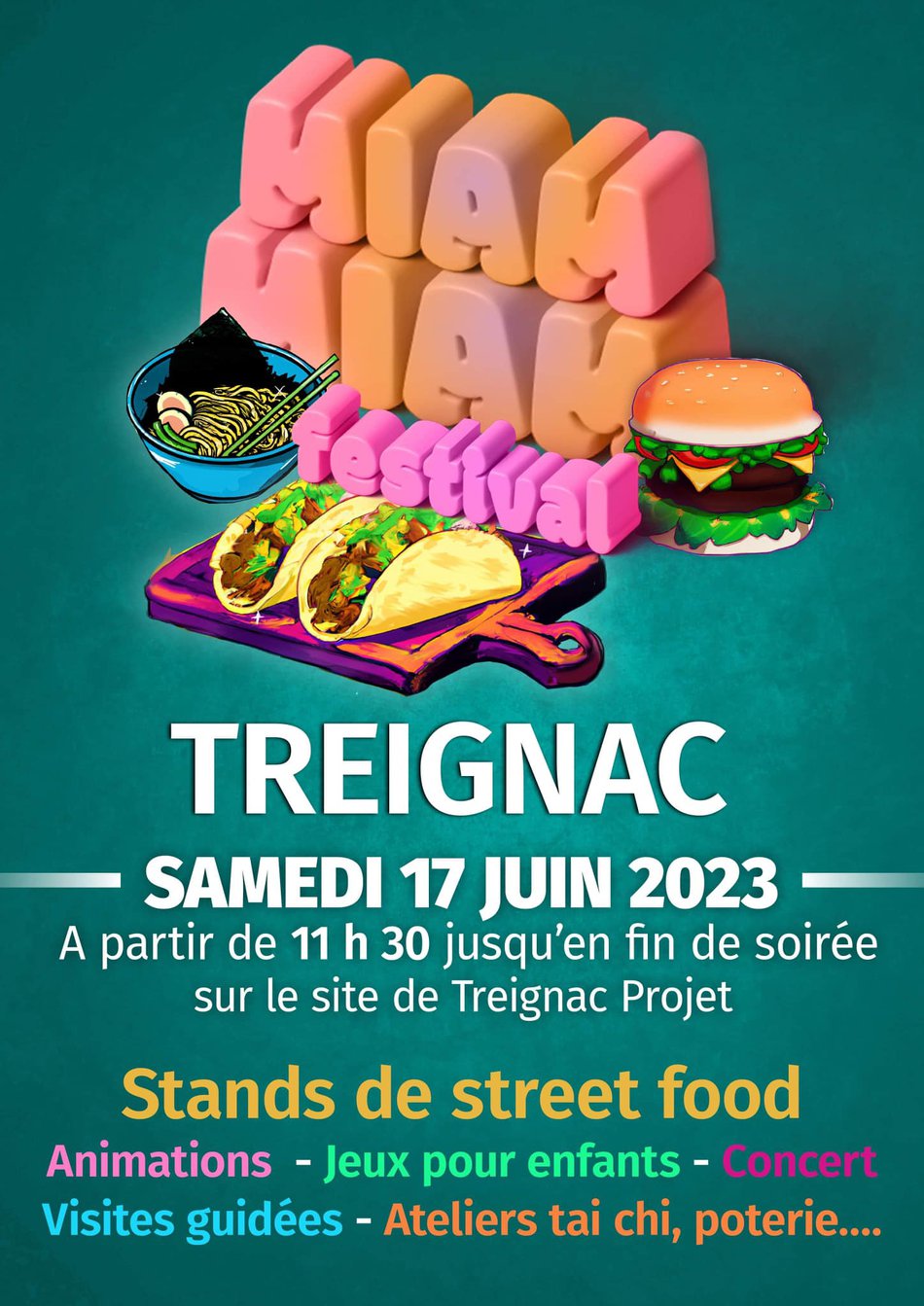 Samedi 17 juin à Treignac dans le cadre du « Miam Miam Festival » à partir de 11h30 (à l’ancienne filature aujourd’hui “Treignac Projet”). Des séances d’essai vous seront proposées à 14h30, 16h et 17h30 à partir de la place des Pénitents de Treignac (rdv à droite de la Chapelle), le nombre participants étant limité, il sera préférable de vous inscrire à l’avance sur le stand du festival.